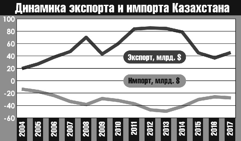Те самые тучные годы, до кризиса 2008-2009 годов, отображаются очень просто: поступательным наращиванием и экспорта, и импорта. Затем мировой кризисный спад, потом довольно быстрое восстановление (благодаря восстановлению цен на нефть), под которое уже тогда едва ли не каждый год мы (и весь мир) объявляли окончательный выход из кризиса. Потом опять резкое пике - и это уже сыграла политика: Майдан - Крым - санкции. Цены на нефть были переведены под нижнюю планку, а дополнительную роль в резком схлопывании и экспорта, и импорта сыграло девальвационное вслед за рублем пике тенге. Этим россияне и мы пытались смягчить последствия обрушения сырьевых цен, но лишь усугубили положение с уменьшением поступлений из-за рубежа валюты и импортируемых товаров.