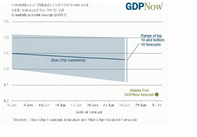 Достаточно вспомнить данные по ВВП США за IV квартал 2015 г. Американская экономика выросла всего на 0,7%, хотя изначально аналитики озвучивали цифры чуть ли не в 3%. Обычно для более реалистичных ожиданий принято смотреть на данные модели ФРБ Атланты, которая за прошлый год успела себя зарекомендовать с самой лучшей стороны.