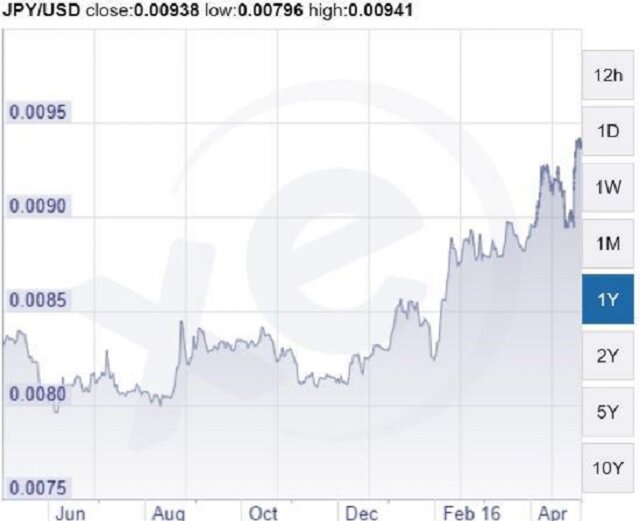 ВВП Японии в 2016 г. вырастет в лучшем случае на 1,2%. Уровень инфляции в еврозоне составляет 0,2%, а французская безработица превышает 10%. Этот список можно продолжать дальше, но самая страшная статистика приходит из Италии, где некоторые крупные банки оцениваются менее чем в половину балансовой стоимости, что предполагает ожидания огромных потерь по кредитам. Сейчас явно не время ужесточать денежно-кредитную политику за счет повышения стоимости своей валюты. Но это именно то, что Япония и Европа собираются делать.