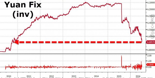 Только за прошлый год юань потерял к доллару 4,5%, а в этом году - еще почти 2%. Сегодня, например, Народный банк Китая установил минимальный официальный курс юаня с ноября 2010 г. - до 6,6857 юаня за доллар.